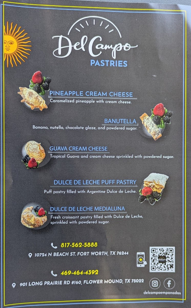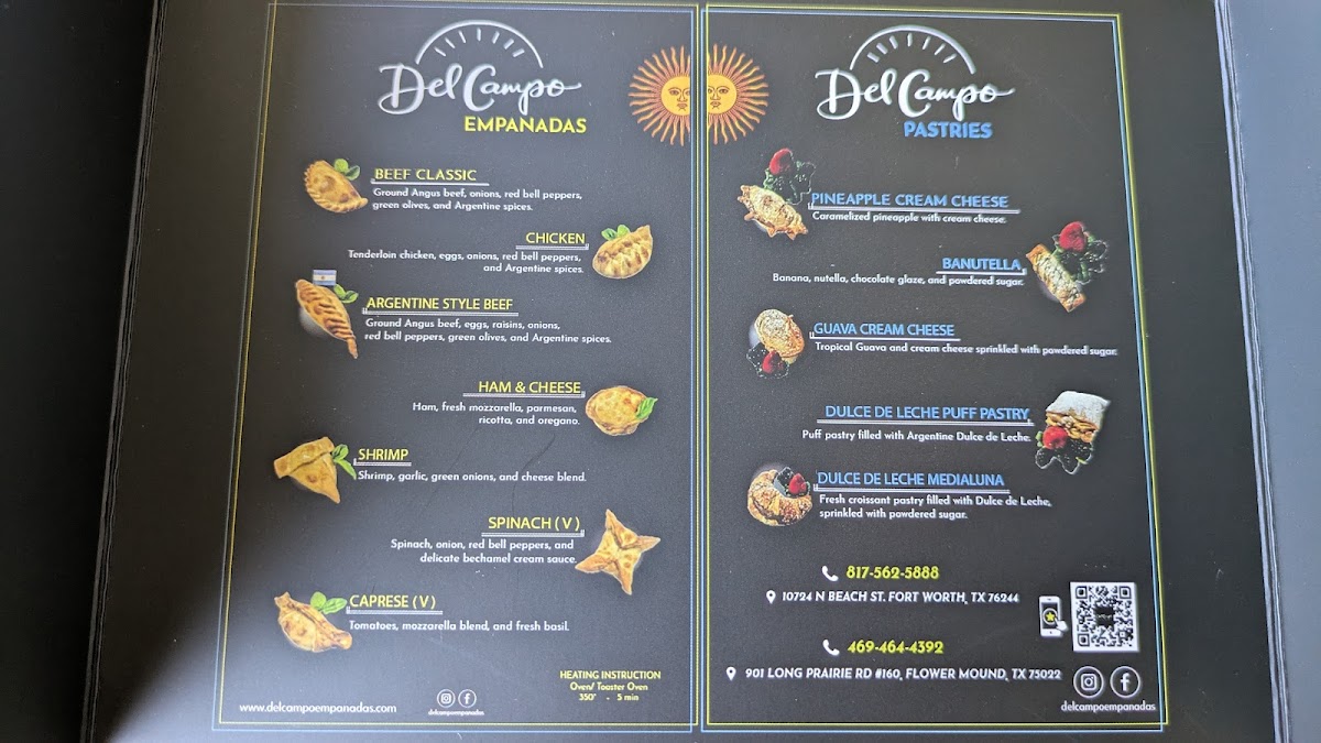At Del Campo Empanadas, the menu comes together as a thoughtful showcase of Argentine comfort food with a creative, café-style twist, and it’s easy to see how each item contributes to a cohesive dining experience. The empanada selection is the backbone of the menu, highlighted by Shrimp Spinach Ham & Cheese Argentina Beef Empanadas, which balance savory fillings and well-seasoned meats with flaky, carefully crimped dough. That craftsmanship is also evident in Left to Right Argentinian Beef Chicken Last Spinach Look at the Care Put into Shaping and Finishing, a presentation that emphasizes variety and the attention given to each empanada’s shape and finish. Vegetarian options like Caprese Empanada and Spinach Empanada and Caprese Empanadas add freshness through tomato, basil, cheese, and greens, offering lighter yet satisfying alternatives without losing the restaurant’s signature richness. For something more indulgent, pastries such as Dulce De Leche Puff Pastry, Banana Nutella Croissant, Apple Cinnamon Pastry, and Guava Cream Cheese Empanada round out the menu with comforting sweetness and familiar flavors elevated by quality ingredients. Savory street-food style items like Choripanes and Arepas Argentinas Y Café broaden the menu beyond empanadas, reinforcing the Argentine identity while giving diners hearty, shareable options. Beverage choices like Moscow Mule and the welcoming touch of Free Coffee complement both savory and sweet dishes, making the overall menu feel complete and well-paced. Even simple pairings such as Caprese Empanada Left Banana Nutella Right reflect the balance between savory and dessert items that defines the experience. Taken together, the menu feels intentional and well-edited, where each highlighted dish supports a clear vision of Argentine-inspired food that is approachable, flavorful, and carefully prepared.